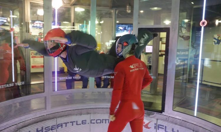 The scariest thing about indoor skydiving was probably the dire signs at the entrance of iFly in Tukwila. The gist of them: You might die! I do many activities requiring signing waivers, but this waiver was a doozy. However, my laidback flight instructor put me at ease. Once I took the short training course where I learned hand signals (bend your legs more, bend them less, chin up) and zipped up my puffy flight suit, instructor James Finch led me into the wind tunnel and taught me to fly.